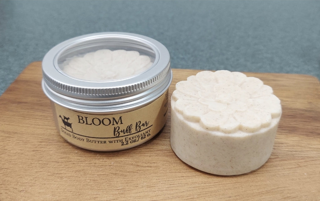 Meet BLOOM, our flower-shaped in-shower Buff Bar that transforms your daily routine into a simple self-care ritual. This solid body butter melts on contact with warm skin, releasing rich, nourishing butters while gently exfoliating for soft, renewed glowing skin.